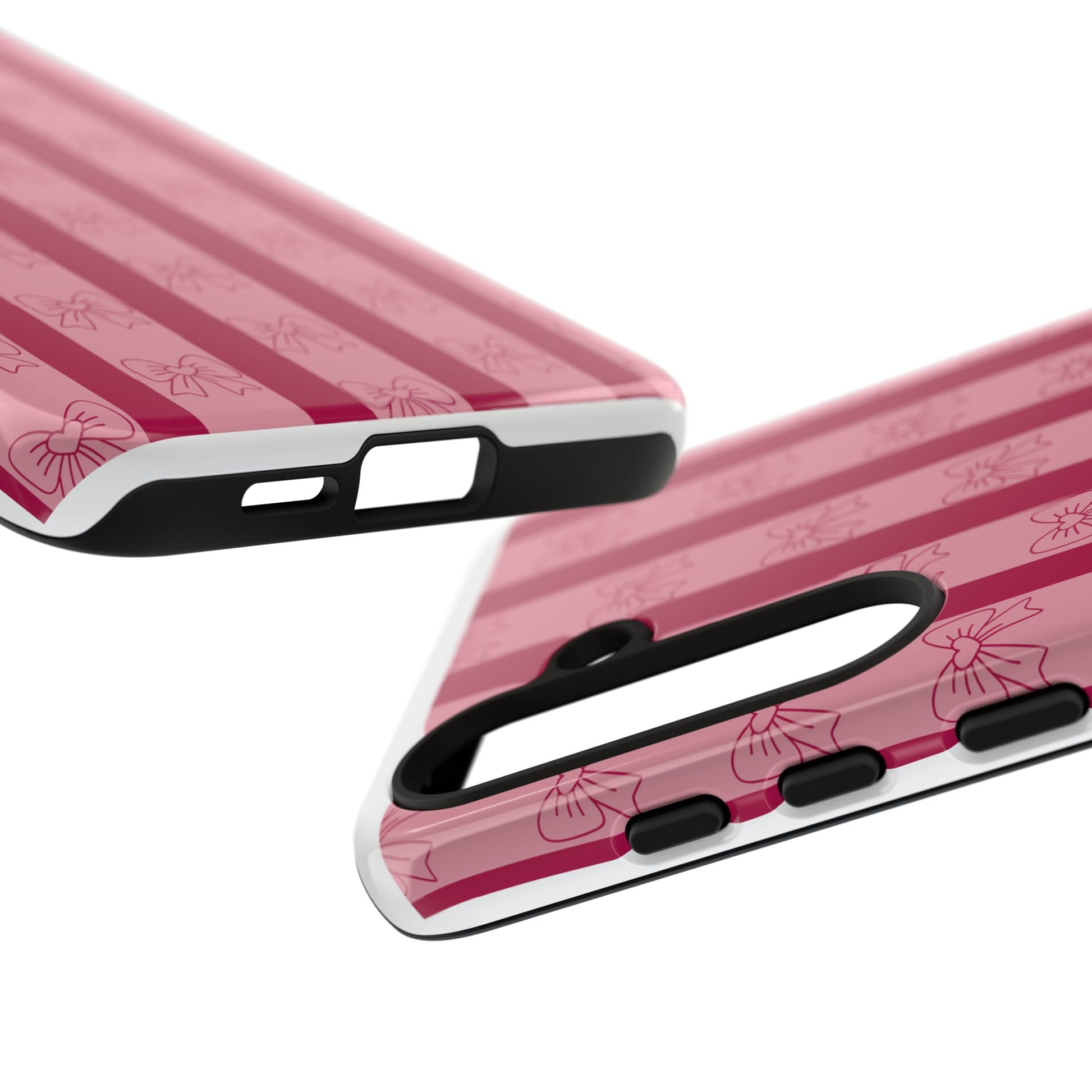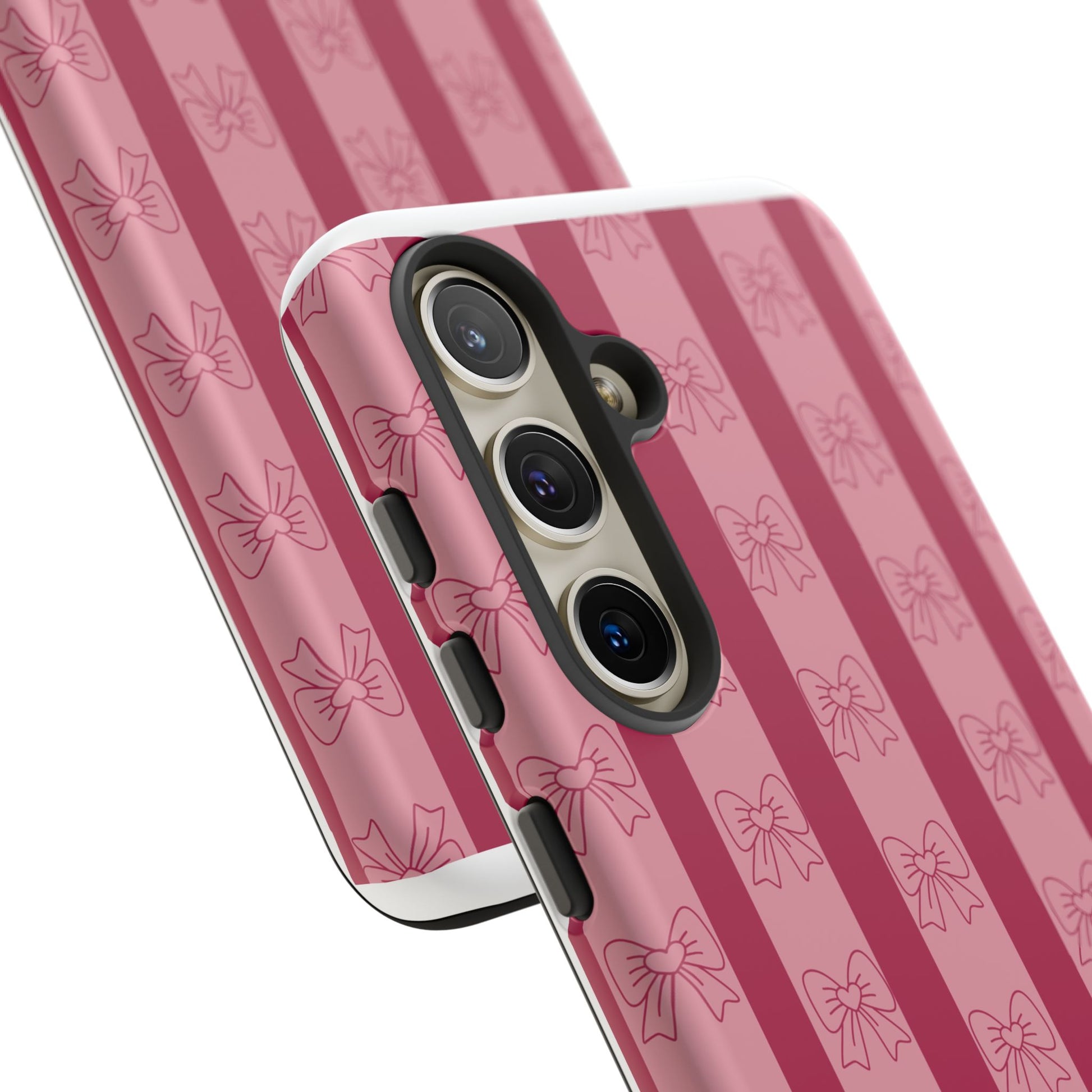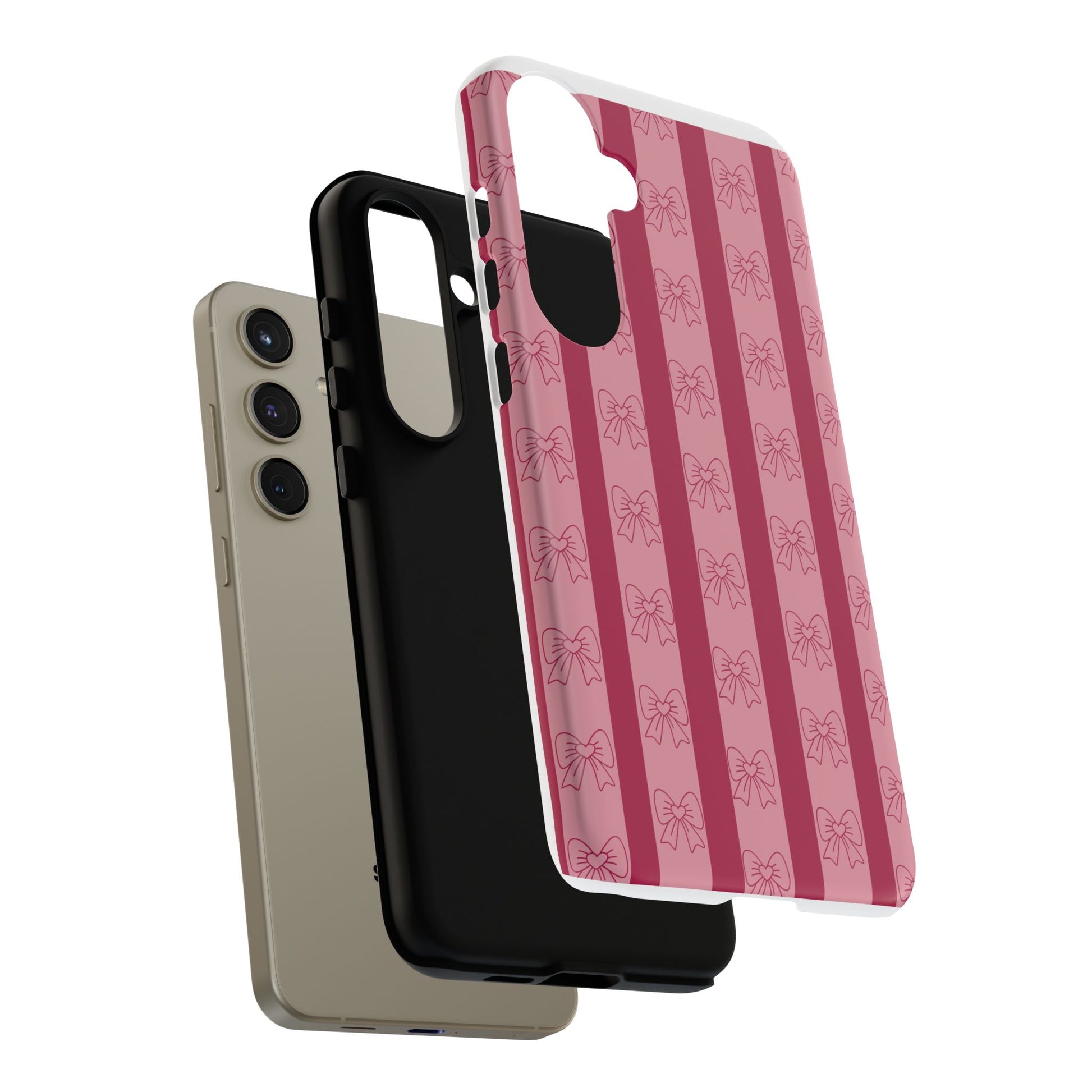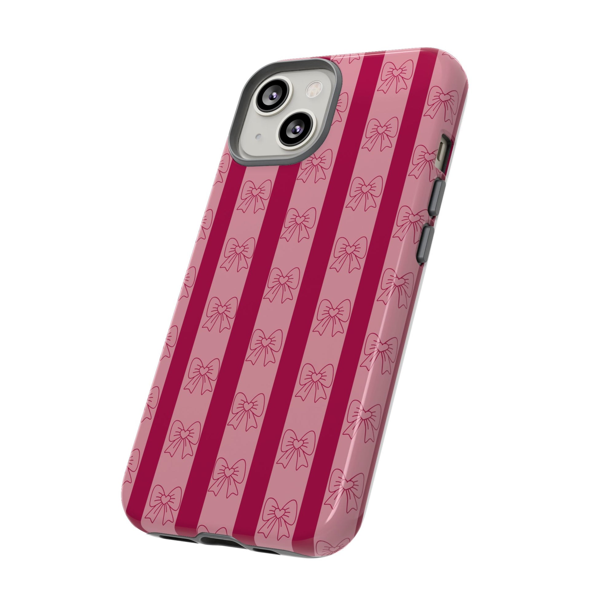Cute Bow Phone Case, Tough Phone Cases for Girls, Pink Striped Phone Cover, Gift for Her, Trendy Mobile Accessory, Bow Pattern Case