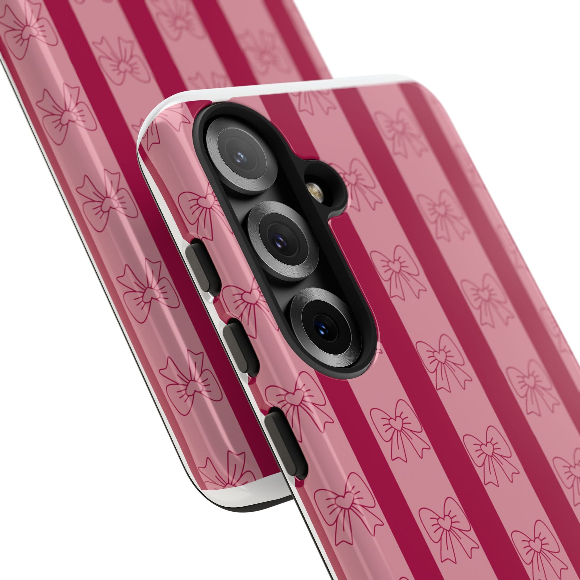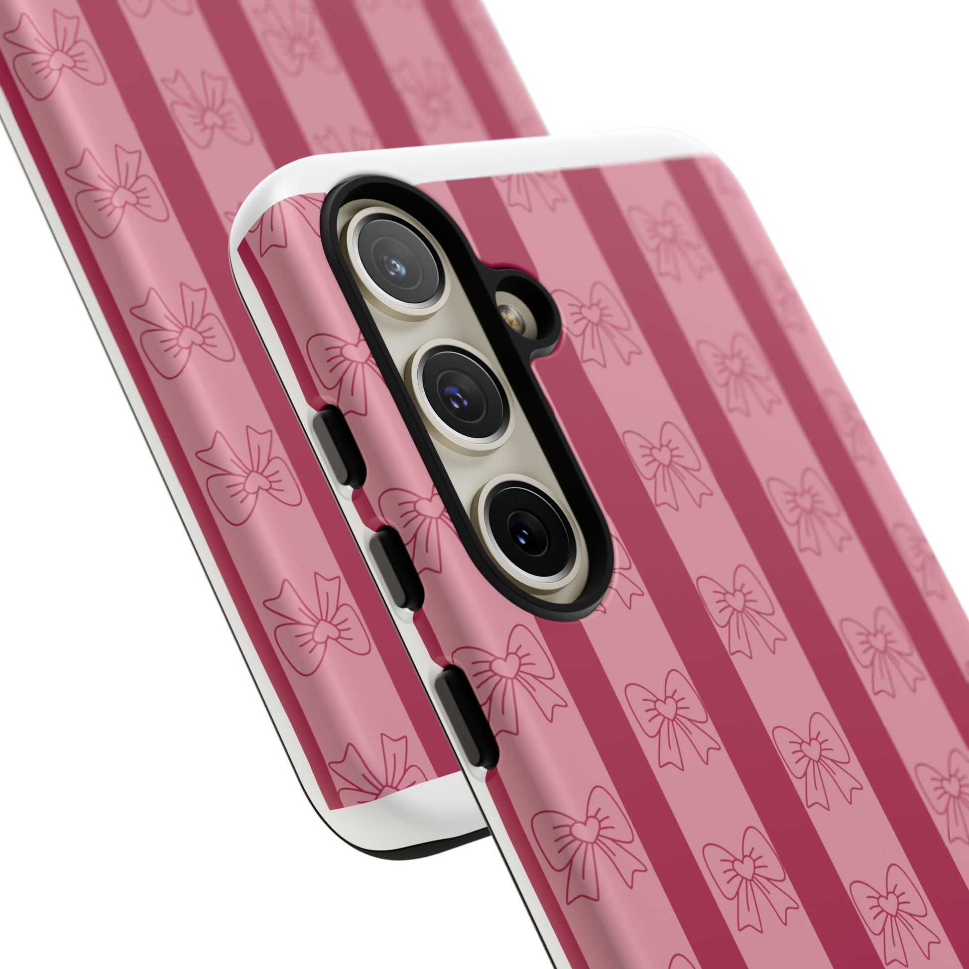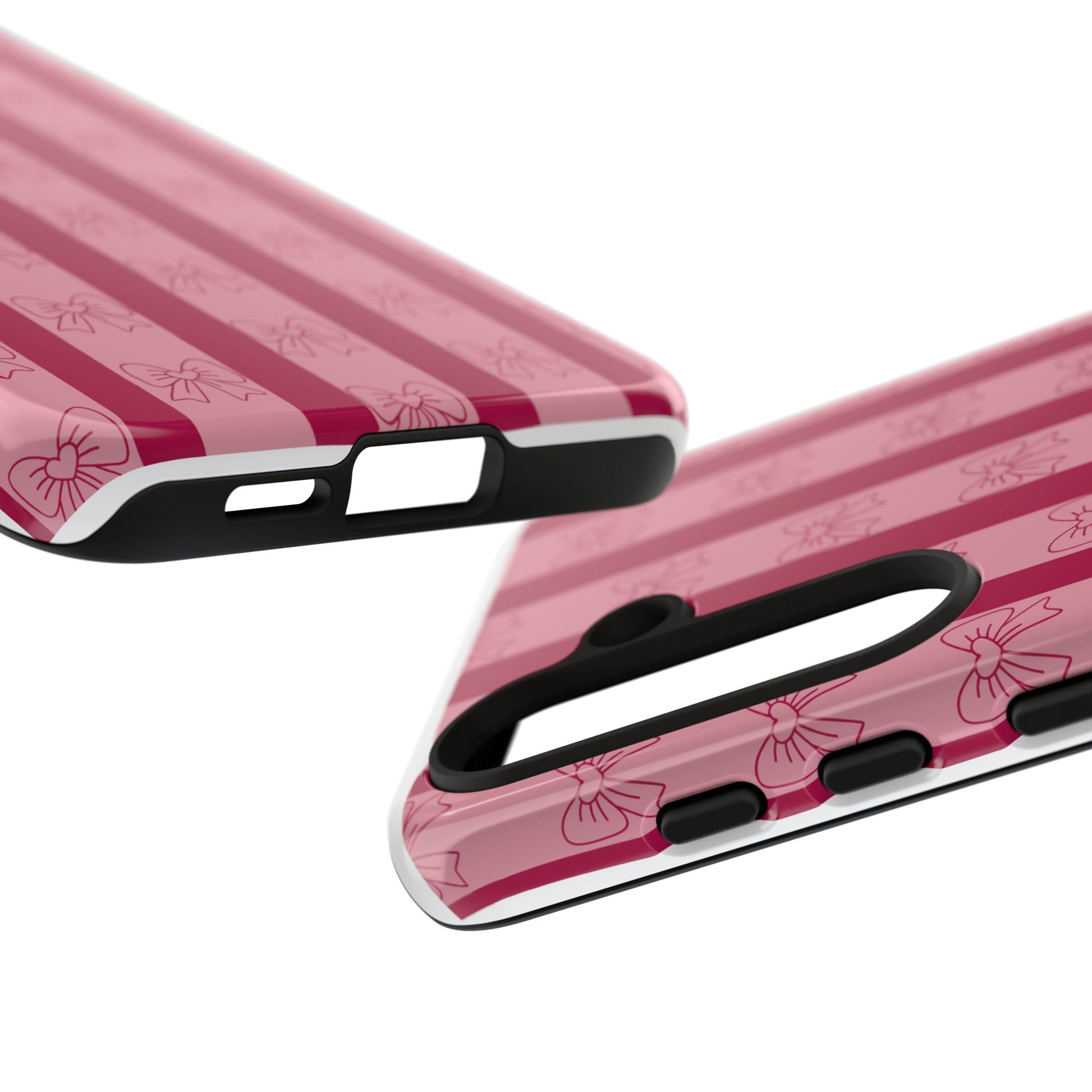Cute Bow Phone Case, Tough Phone Cases for Girls, Pink Striped Phone Cover, Gift for Her, Trendy Mobile Accessory, Bow Pattern Case