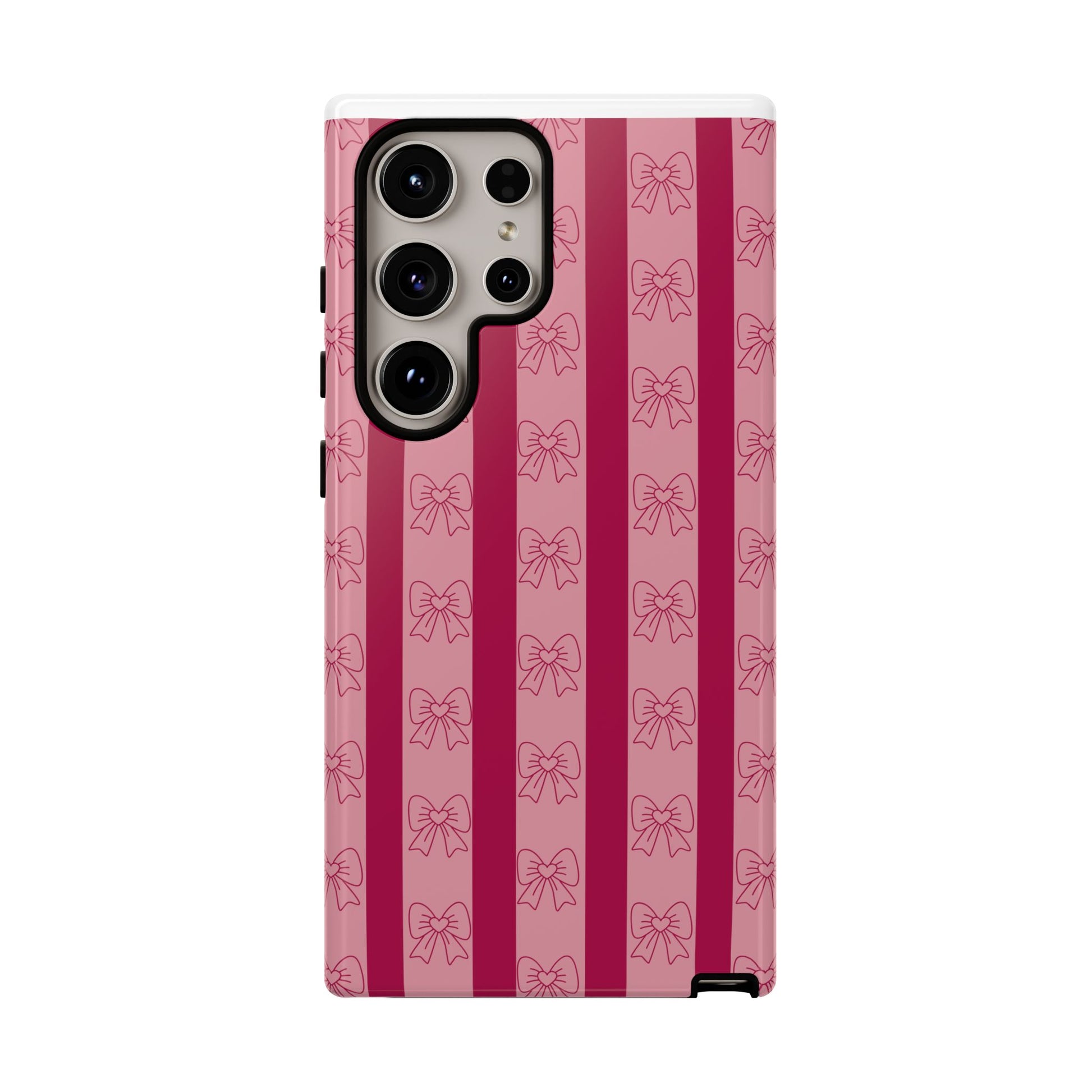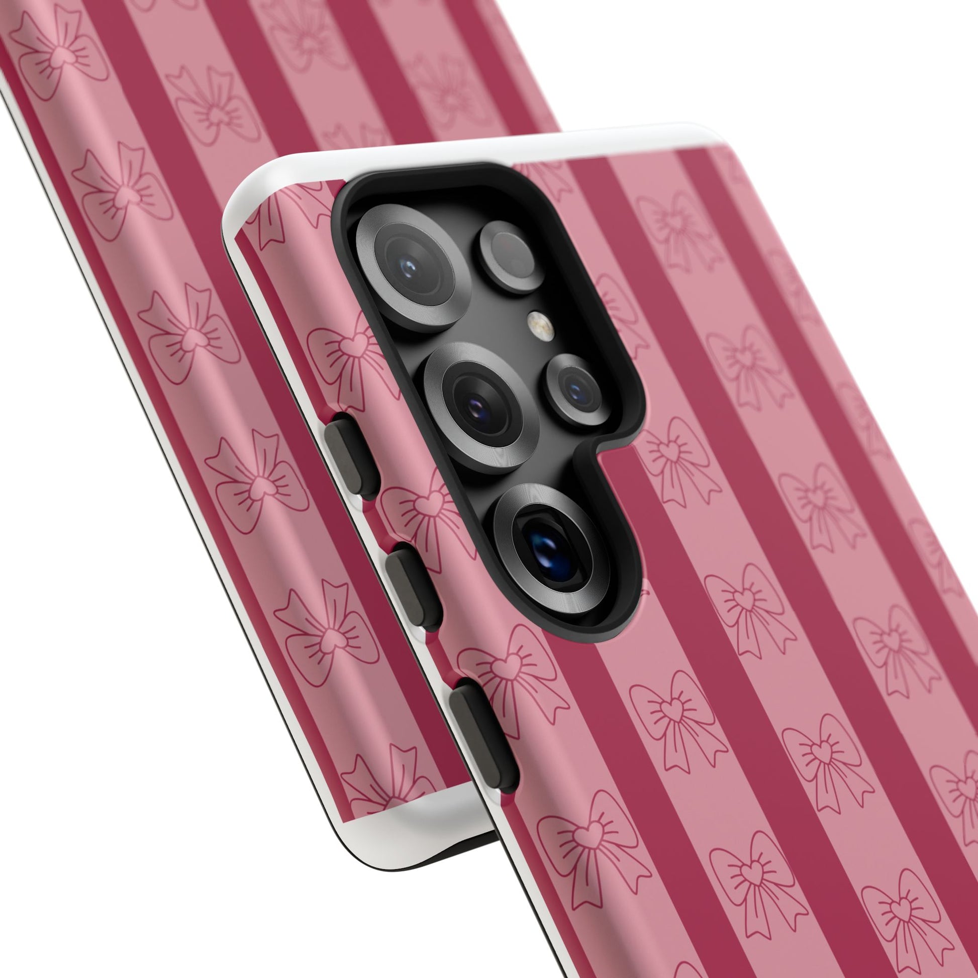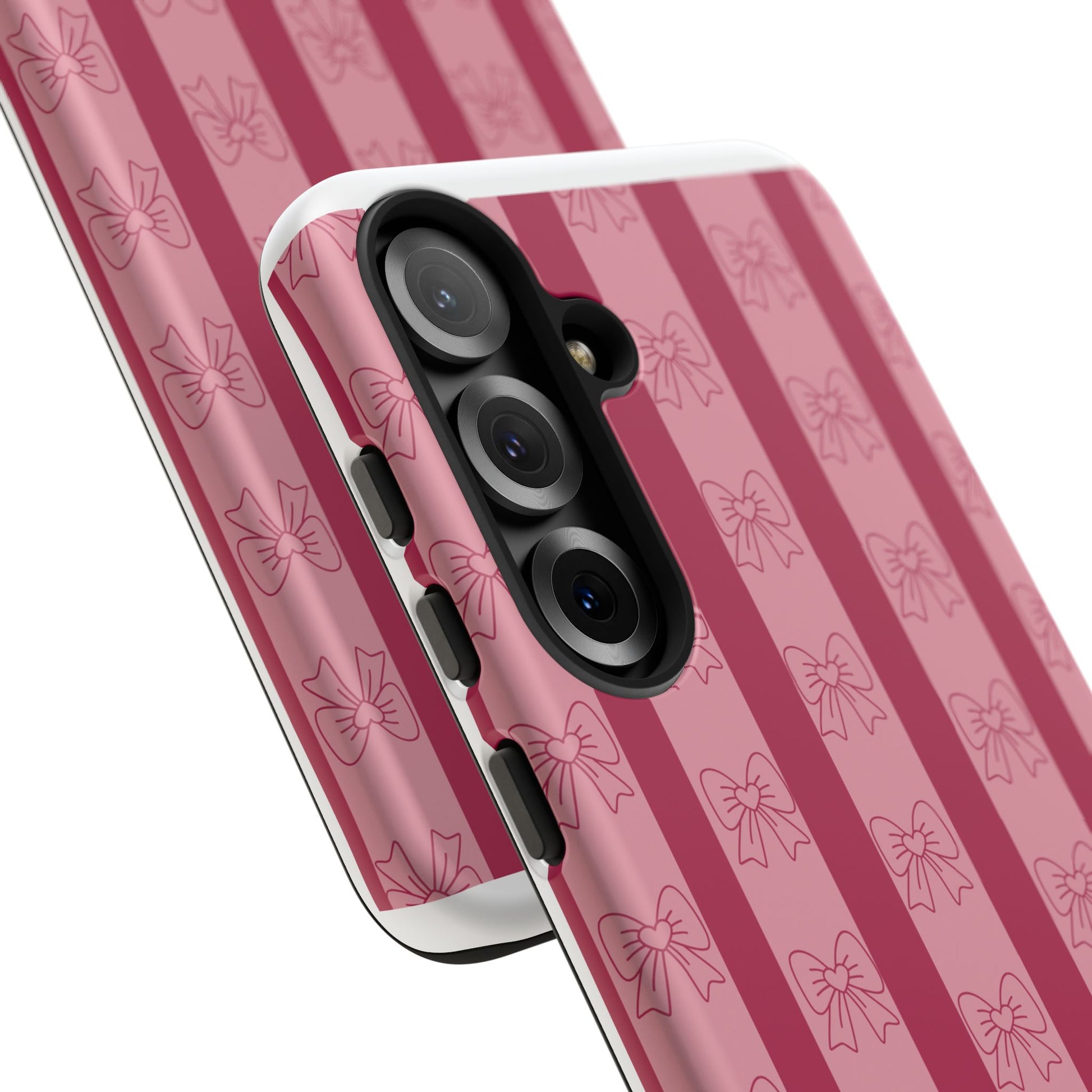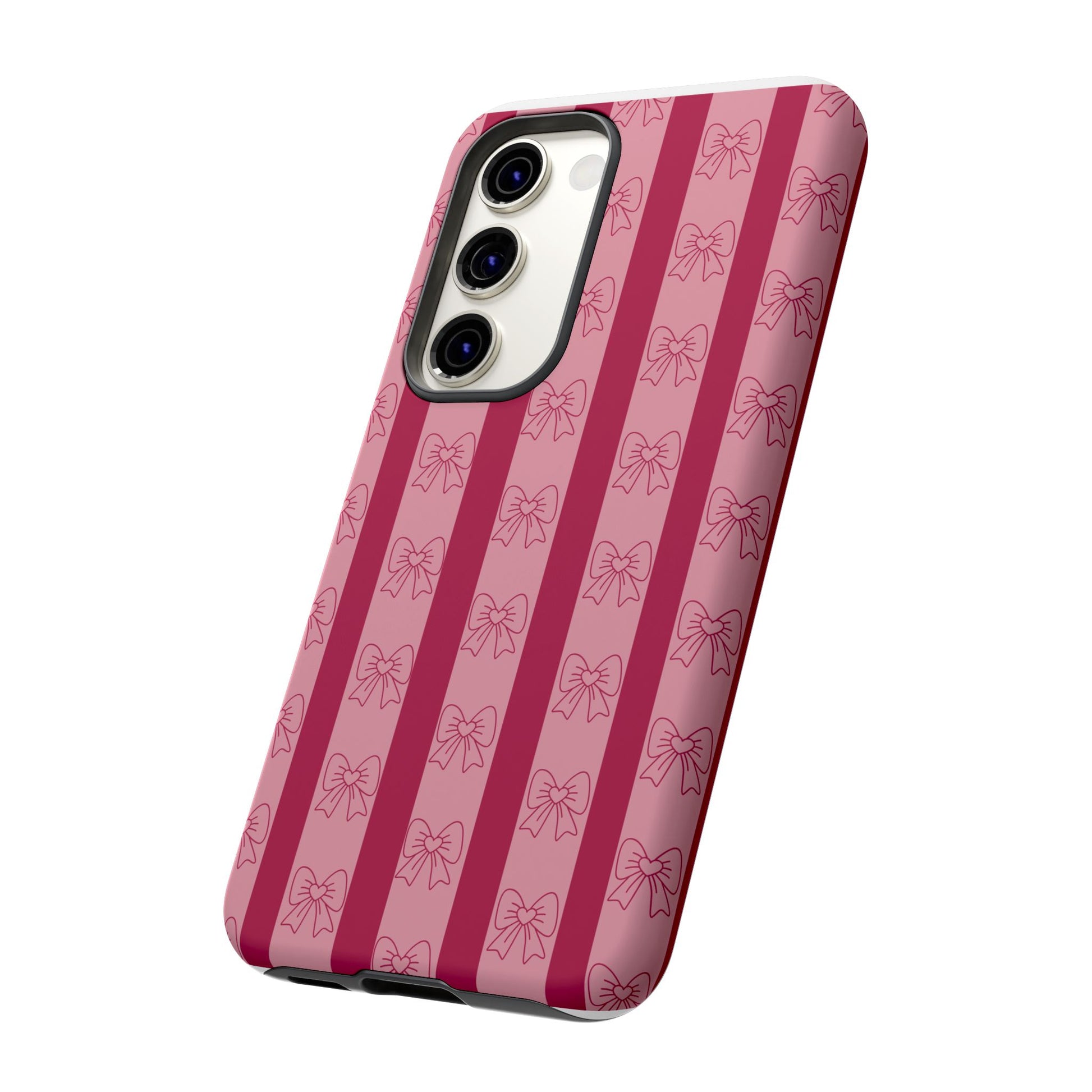 Cute Bow Phone Case, Tough Phone Cases for Girls, Pink Striped Phone Cover, Gift for Her, Trendy Mobile Accessory, Bow Pattern Case